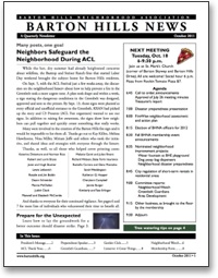 Your quarterly Barton Hills Neighborhood Association newsletter is now online and will soon be arriving in printed form for residents.